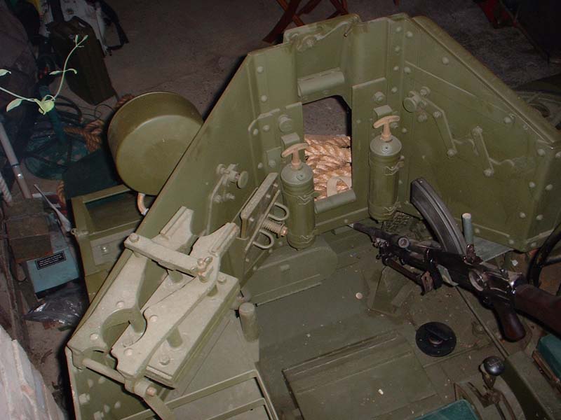 With the mechanical aspect sorted I then set about fabricating the metal work. I made and welded on the metal tubing that surrounds the crew compartment. Next up was the oil and water stowage racks front and rear as well as the spare wheel clamp and rope brackets. Two sets of pioneer brackets were made for the front and rear of the vehicle. A rear stowage box and internal tool and stowage boxes along with two rear set frames. A central Vickers rotating gun mount for the engine deck and a Vickers stowage brackets for inside of the vehicle were next on the list.